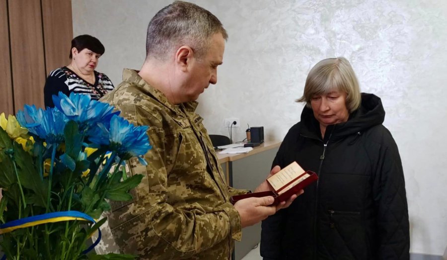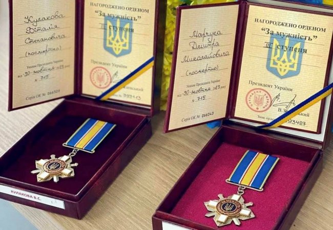 Орден ІІІ ступеня «За мужність», яким посмертно нагородив президент України Володимир Зеленський командира зенітно-ракетного взводу десантно-штурмового батальйону, солдата Дмитра Миколайовича Марчука з села Струмівка, отримала його мати Наталія Василівна.