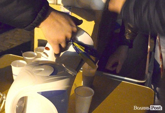 У Луцьку на Євромайдані компанія ГРАНД ПЕРСОНА пригощає змерзлих мітингувальників гарячими напоями.