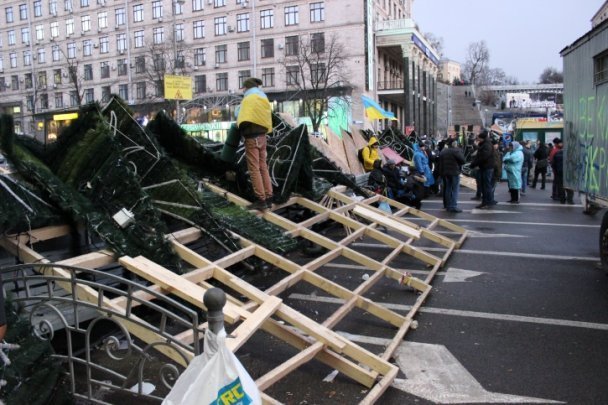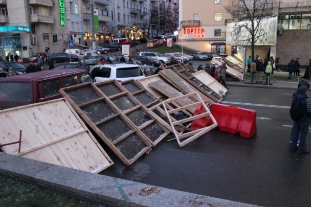 Мітингувальники заблокували центр Києва, побудувавши кілька великих барикад.