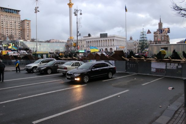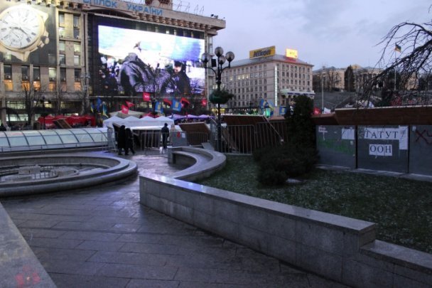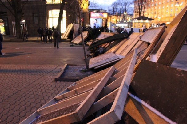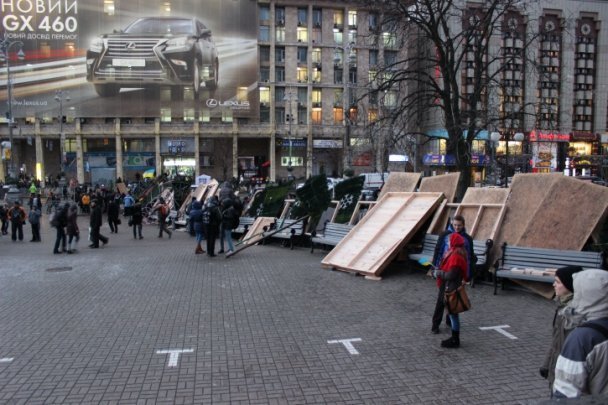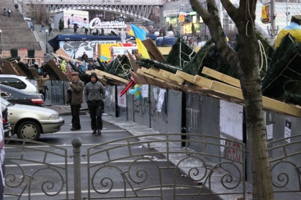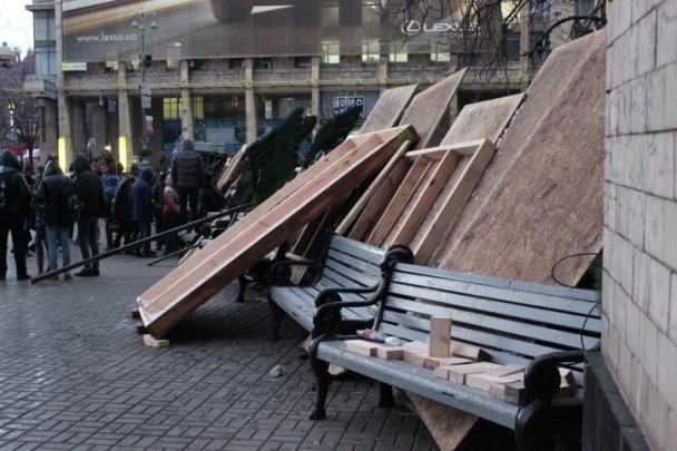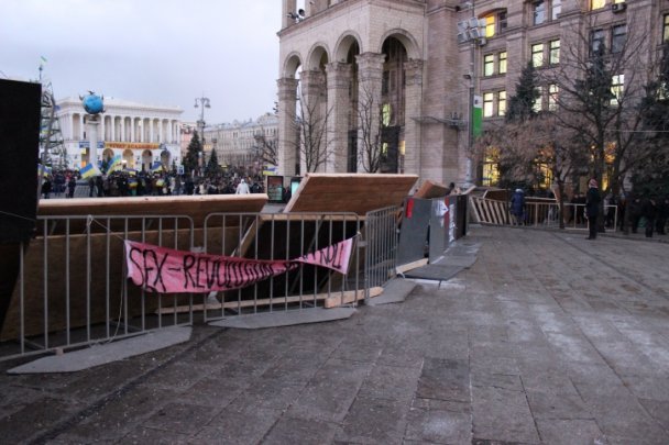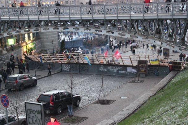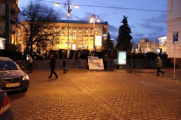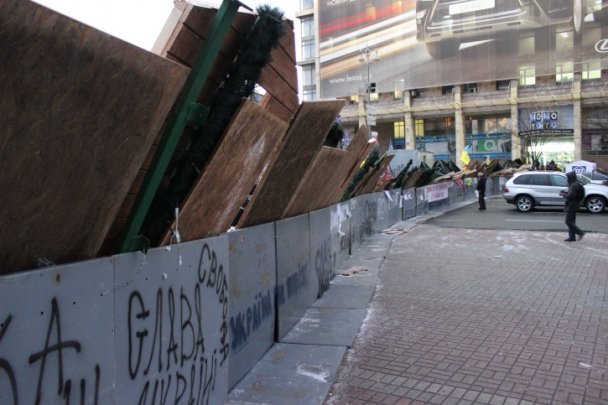 Барикади відгороджують Майдан Незалежності зі сторони вулиці Городецького, зі сторони Бесарабки та зі сторони Європейської площі.