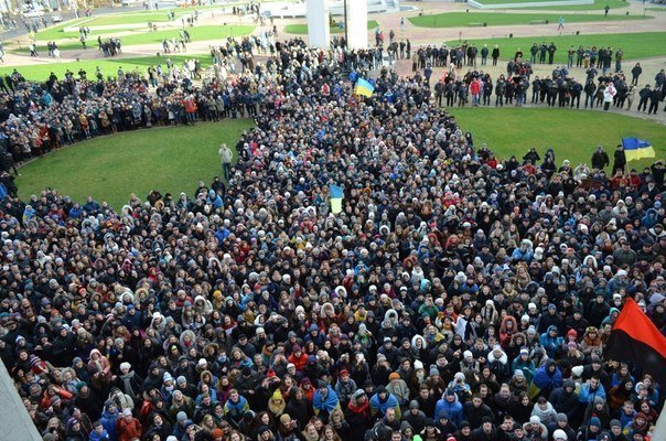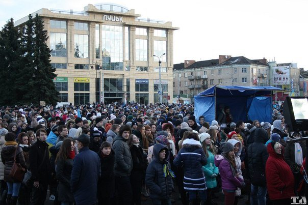 Так, 2 грудня багатотисячний натовп зібрався на Театральному майдані о 8:00. Звідки він рушив до облдержадміністрації, де координатори луцького Євромайдану вимагали, щоб губернатор та голова облради пішли у відставку, ті відмовили.