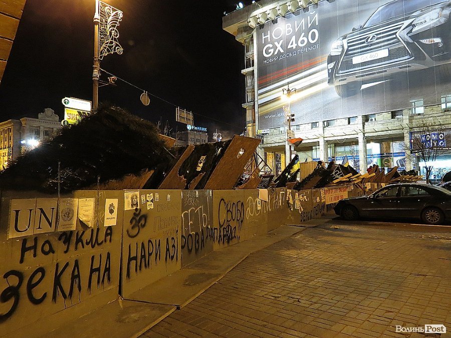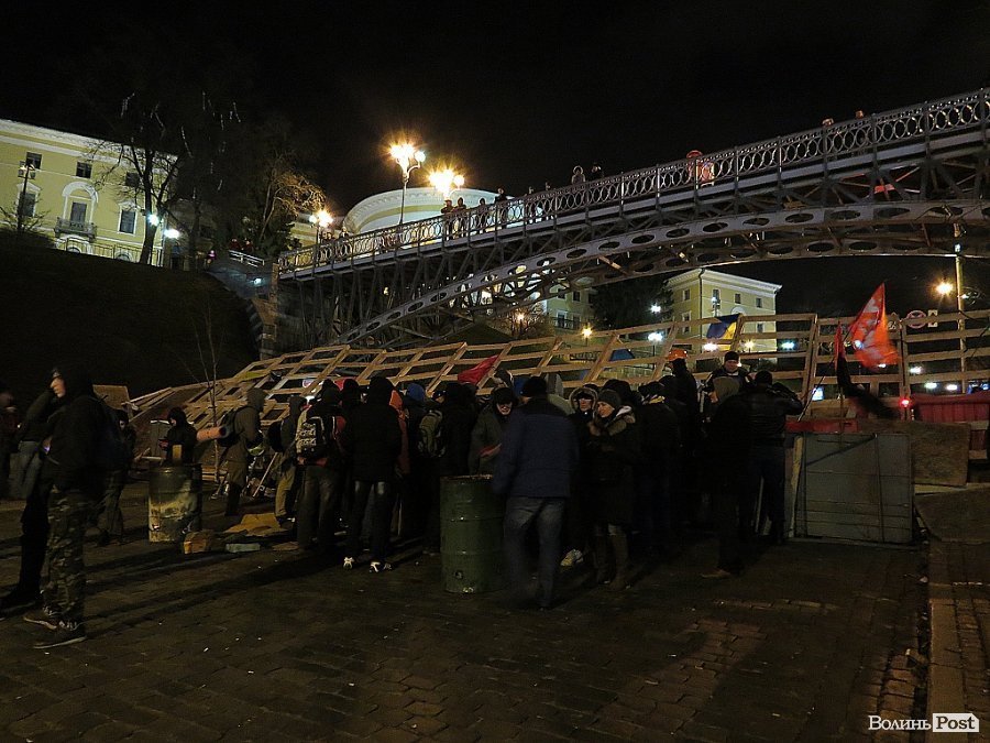 Активісти встановили загорожу одразу при в'їзді на Банкову. Прохід перекрили металевими парканами. Активісти за посвідченням пропускають ЗМІ. Один із волонтерів проводить журналіста безпосередньо до кордону правоохоронців біля Адміністрації Президента. Попереджає: поводитися треба обережно.
