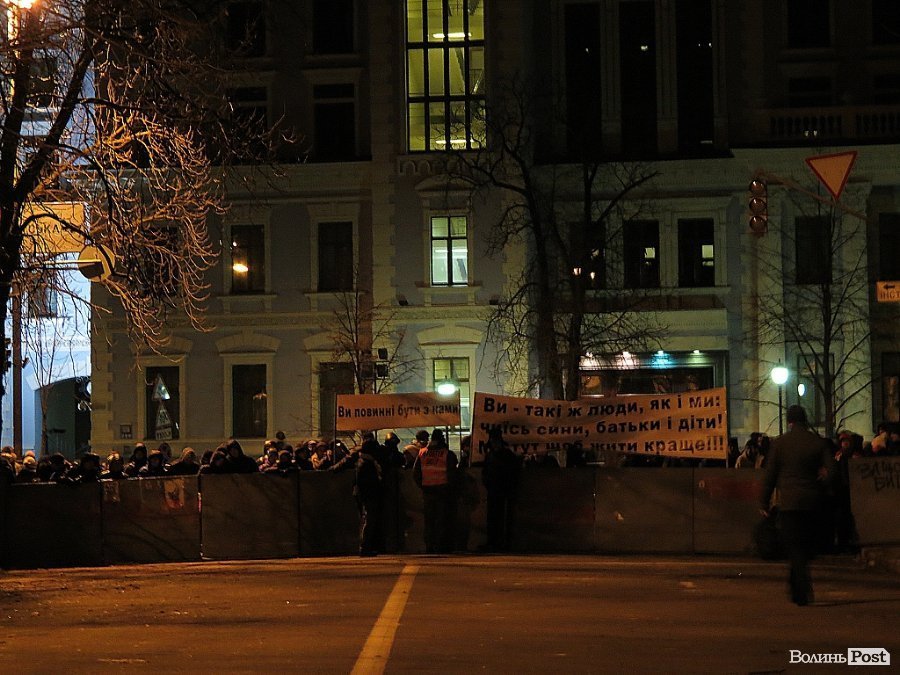 Біля блокуючого паркану - мітингувальники за плакатами. Написи повернули до правоохронців: "Ви такі ж люди, як і ми".