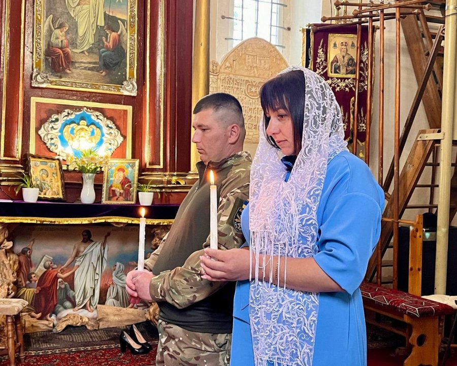Олександр — військовослужбовець ЗСУ, який з початком повномасштабного вторгнення Росії в Україну добровольцем пішов на фронт. Тетяна — херсонка, якій через війну довелося покинути рідну домівку. Поки чоловік воює, Тетяна з дітьми живе у Збаражі. У липні минулого року пара зареєструвала свій шлюб, а 16 квітня вирішили повінчатися в церкві. Для цього Олександр приїхав з війни в коротку відпустку.