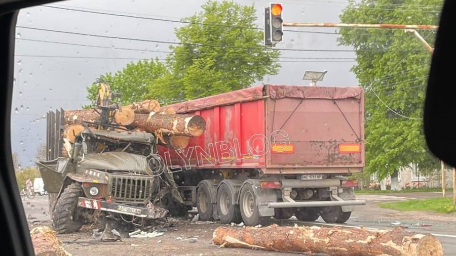 Під Луцьком в аварію потрапили вантажівка та лісовоз