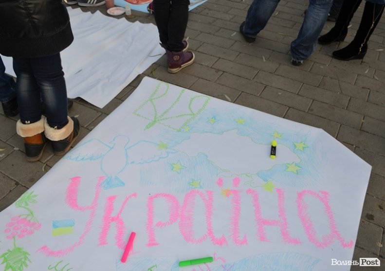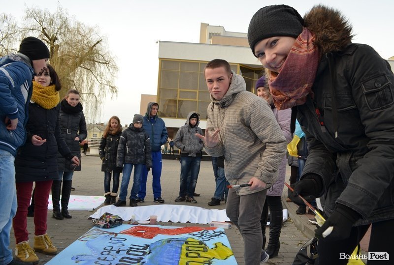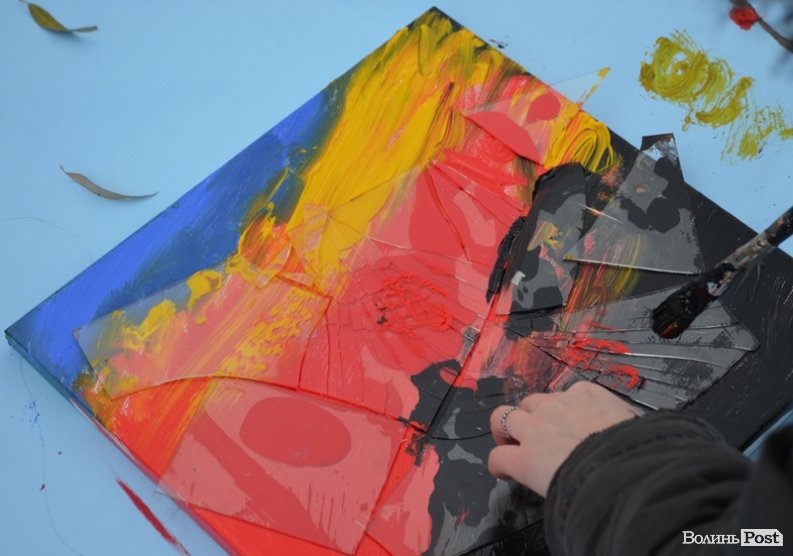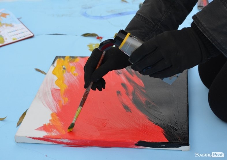 На луцькому Євромайдані 3 грудня в післяобідню пору відбулася акція «Мистецтво замість зброї», ініційована луцькими художницями Небо Міріам і Маргаритою Паламарчук.