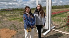 "Цьогоріч у нас з новинок дуже гарні два лілейні сорти тюльпанів, червоний і білий лілейні тюльпани. Дуже красивий "Тріумф манго чарм". Має персиковий колір, такий ніжний. Дуже люблять дівчата у таких фотографуватися. Також є фаворити — піоновидні тюльпани: вони високі, мають велику квіточку", — сказала організаторка.
