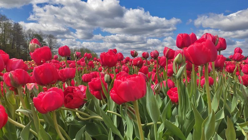 Площа тюльпанового поля — орієнтовно чотири гектари. Про це Суспільному розповіла організаторка заходу Тетяна Пашковська.