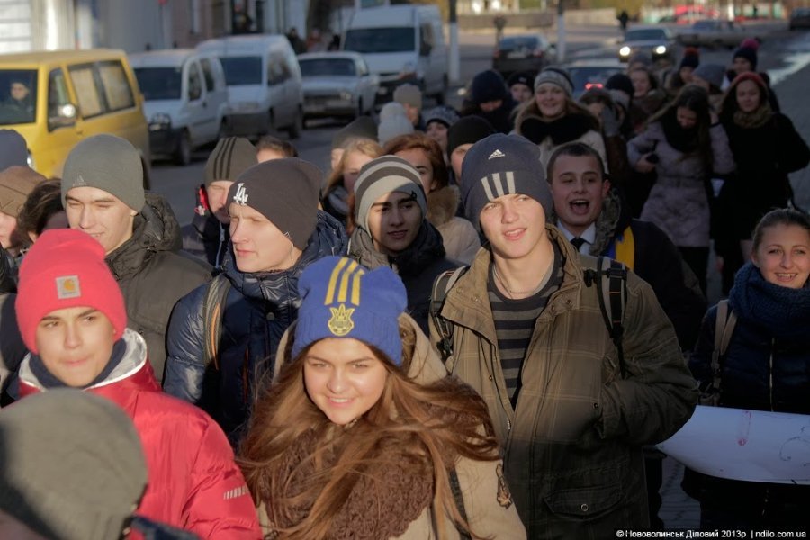 Учнівська молодь протестувала 2 грудня на Майдані Незалежності проти побиття людей у Києві, - пише Нововолинськ діловий.