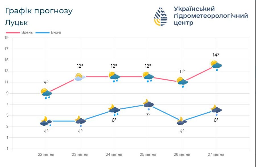 Про це у телеграмі повідомляє Волинський обласний гідрометцентр.