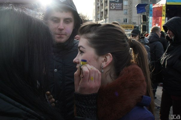 Також 3 грудня на Театральному майдані митці провели акцію "Мистецтво замість зброї", а до 13:00 на майдані були працівники компанії ГРАНД ПЕРСОНА.