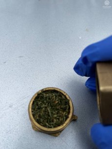 На місці було прийнято рішення провести поверхневу перевірку транспортного засобу. Інспектори виявили у автомобілі прилади для куріння та предмет в якому всередині знаходилася, ймовірно, наркотична речовина.