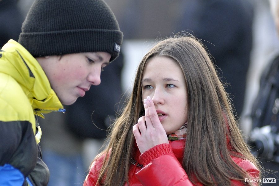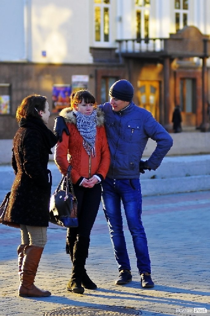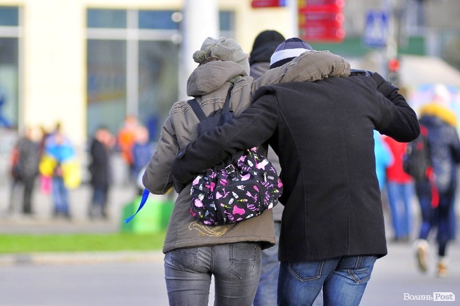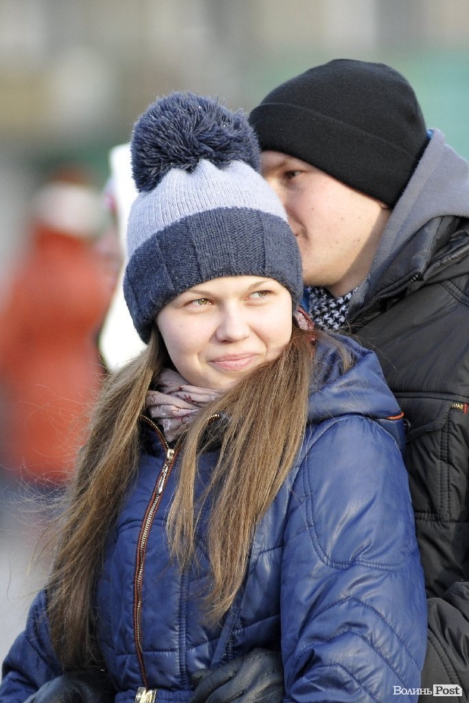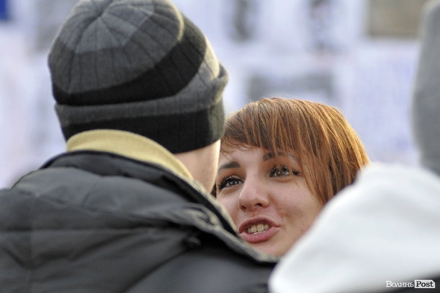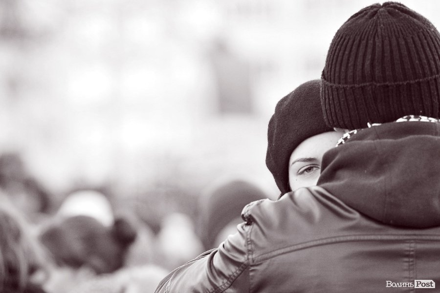 Тож і не дивно, що і натовпі стоїть багато пар. Своїми обіймами та щирістю почуттів вони додають миру та спокою луцькому Євромайдану.
