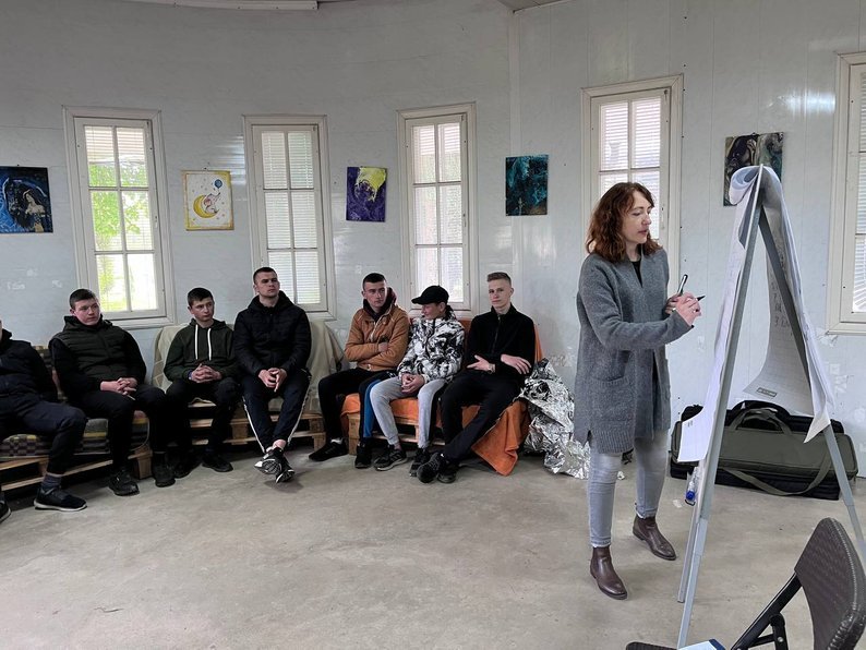Під час вишколу психологиня Людмила Мельник разом із підлітками обговорювали види стресових ситуацій у житті, як на них реагувати та як допомогти собі чи друзям у складних обставинах.