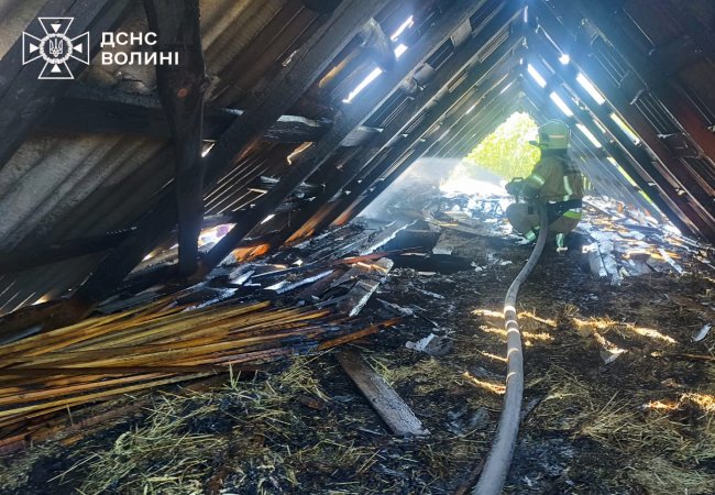 Ліквідувати загоряння вдалося о 15:59. Знищено частково покрівлю та перекриття. Потерпілих немає.