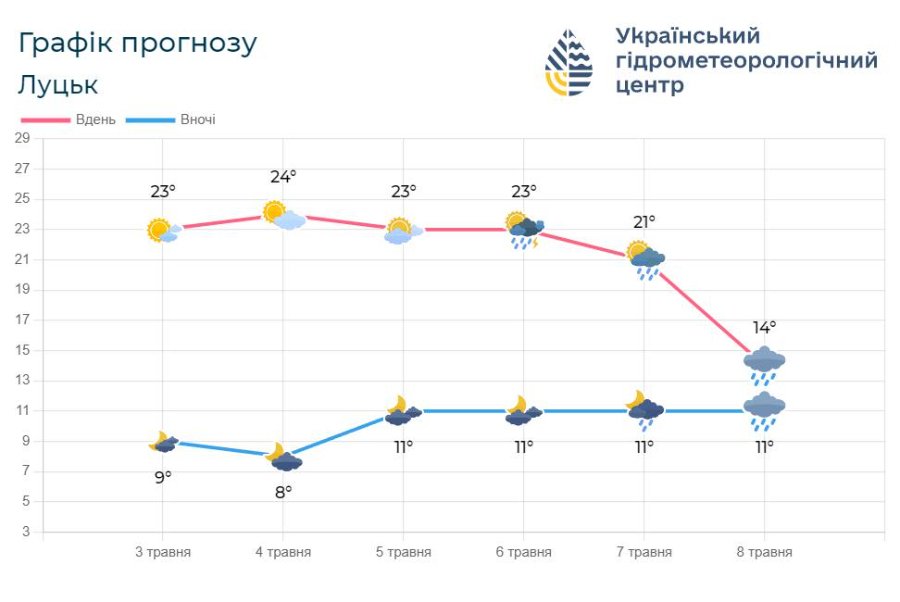 Температура вночі становитиме 8-13⁰, вдень - 20-25⁰ тепла, повідомляє в телеграмі Волинський обласний гідрометцентр.