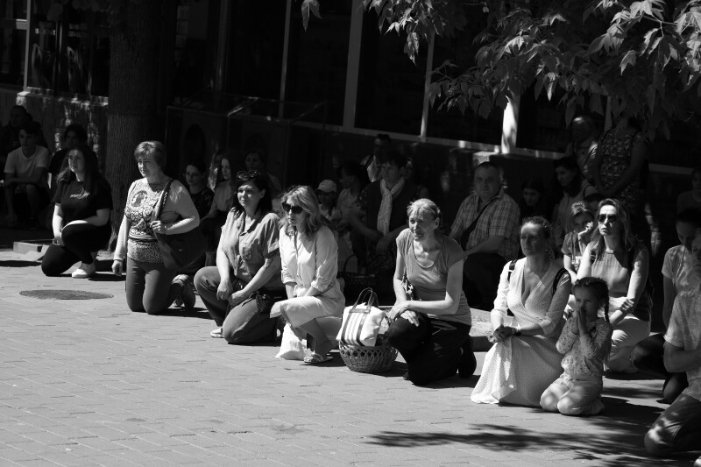 Після завершення богослужіння труну з тілом покійного воїна пронесли Театральним майданом, де сотні лучан стали перед захисником на коліна і схилили голови. Біля пам'ятного фотостенду "Герої Небесної Сотні - Загинули за Єдність України" присутні виконали Державний Гімн України.