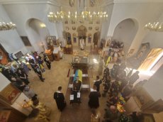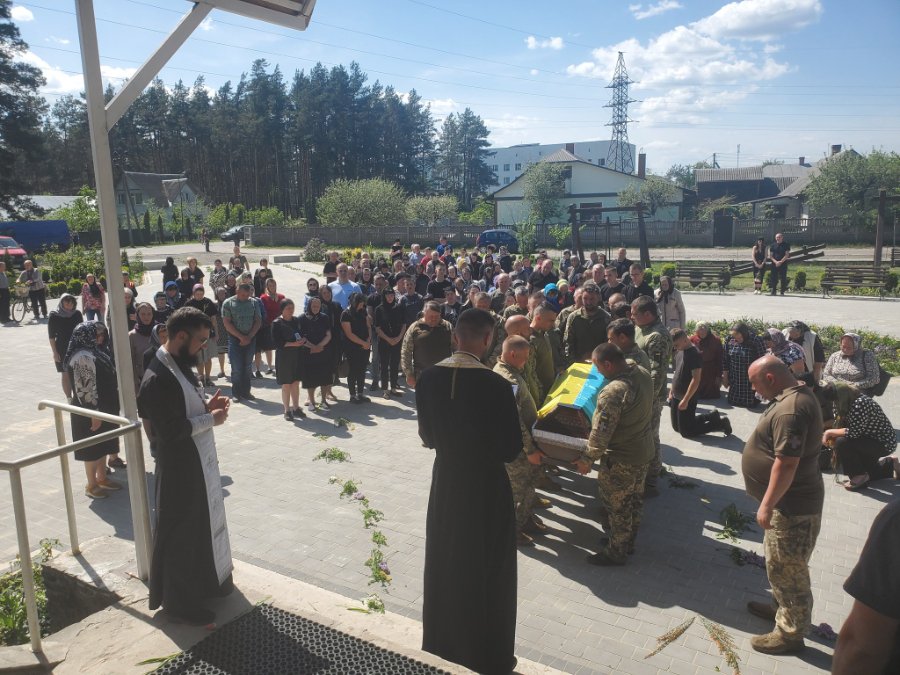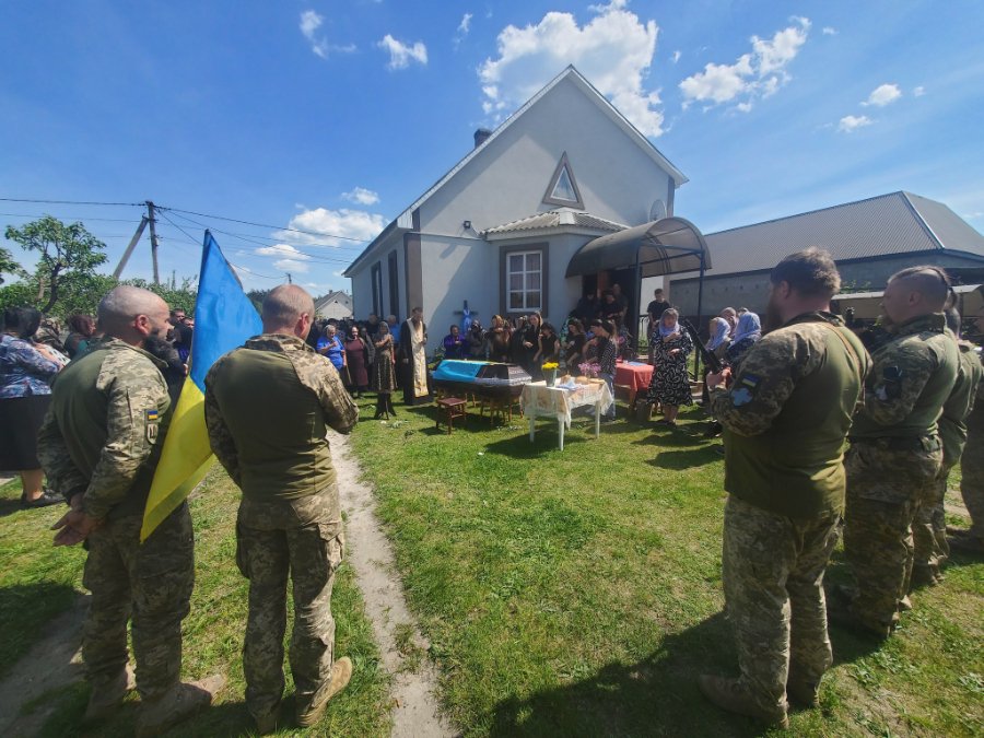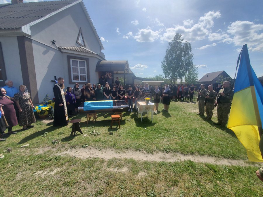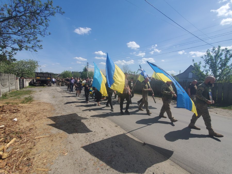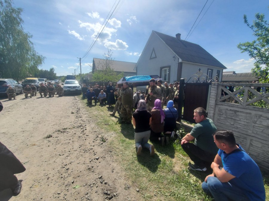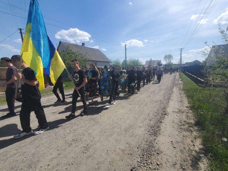 Земляки зустрічали траурний кортеж на колінах, схиливши у скорботі голови та вклонившись безсмертному подвигу. Попрощатися із загиблим прийшли рідні, близькі, друзі, військовослужбовці, представники влади, духовенство та мешканці громади.