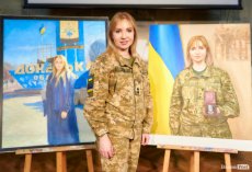 Одне з полотен присвячене прикордонниці – захисниці Маріуполя, яка пройшла жахи російського полону та повернулася, зберігши своє внутрішнє світло та продовжує службу у Волинському прикордонному загоні.