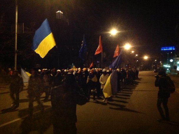 Як пише у себе на сторінці у Facebook нардеп Андрій Парубій, 500 членів самооборони Майдану організованою колоною відвідали блок-пости "Беркуту" біля Кабміну, Адміністрації президента, а також тітушок біля Верховної Ради України.