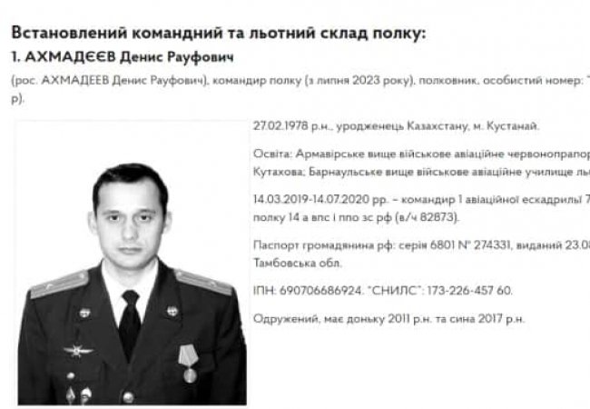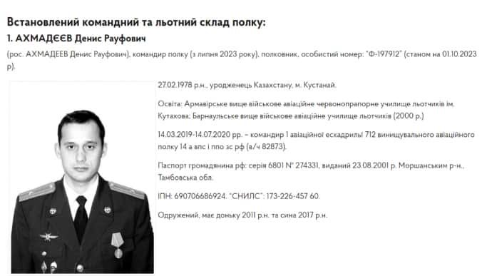 Оперативники та аналітики Головного управління розвідки Міністерства оборони ідентифікували 29 осіб командного, льотного та технічного складу 44-го окремого авіаційного полку особливого призначення дальньої авіації Повітряно-космічних сил рф, які атакують Україну "Кинджалами".