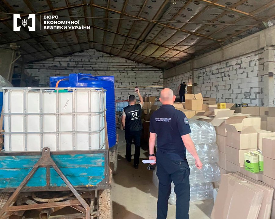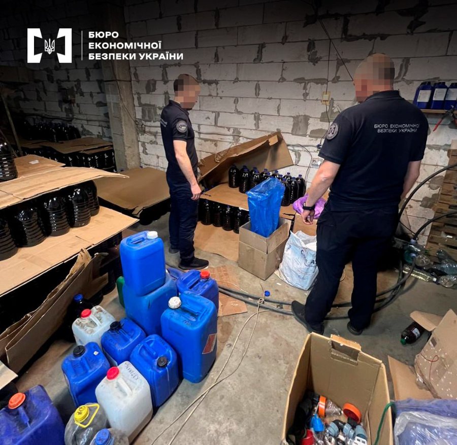 Детективи БЕБ провели обшуки на території незаконного виробництва та вилучили фасовану продукцію об’ємом понад 15 тис. літрів, 5,5 тонн спирту та 1 тонну готової рідини для розливу тощо.