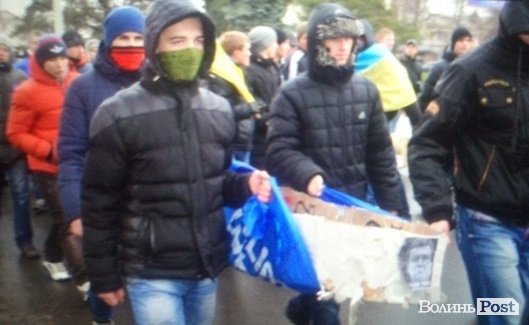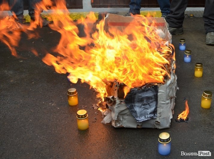ДИВИТИСЯ ФОТО: У ЛУЦЬКУ СПАЛИЛИ "ТРУНУ ПАРТІЇ РЕГІОНІВ"