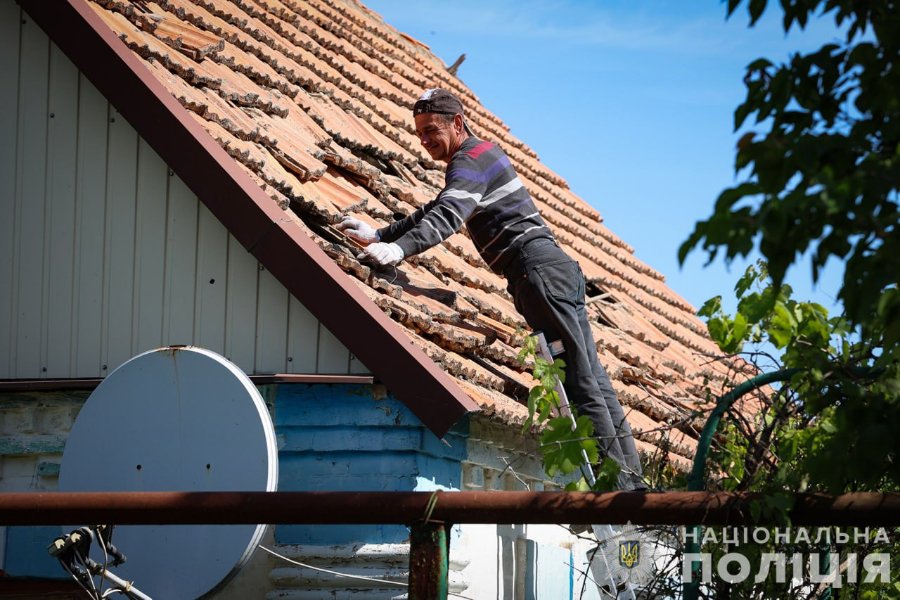 Люди ремонтують дахи, поліцейські об’їжджають місця ворожих влучань і надають постраждалим необхідну допомогу.