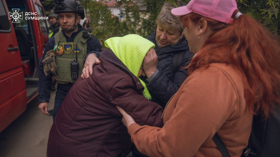 У прикордонному містечку Білопілля у Сумській області триває евакуація населення. Допомагають у цій справі і рятувальники.