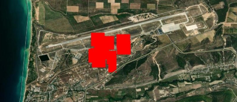 "Крим.Реалії" опублікували супутникові зображення, на яких зафіксована пожежа. Вона виникла 15 травня у районі аеродрому Бельбек.