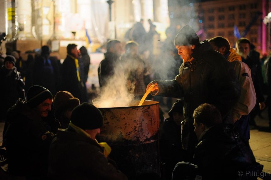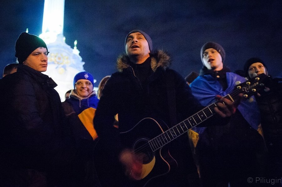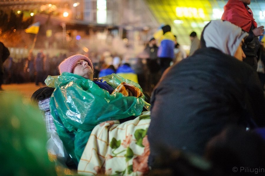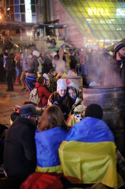 Київський фотограф Олександр Пілюгін опублікував в мережі художні знімки пікетувальників, зроблені за лічені хвилини до жорстокого розгону Євромайдану «Беркутом» у ніч на 30 листопада.