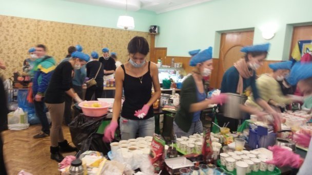 Кожні 30 секунд з приміщення вибігають люди з каструлями та підносами.