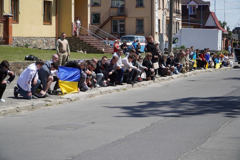 Після панахиди містяни коридором шани, навколішки, провели скорботний кортеж, який відправився у напрямку Шистівського кладовища, де і поховали Артема Рудого з усіма військовими почестями.