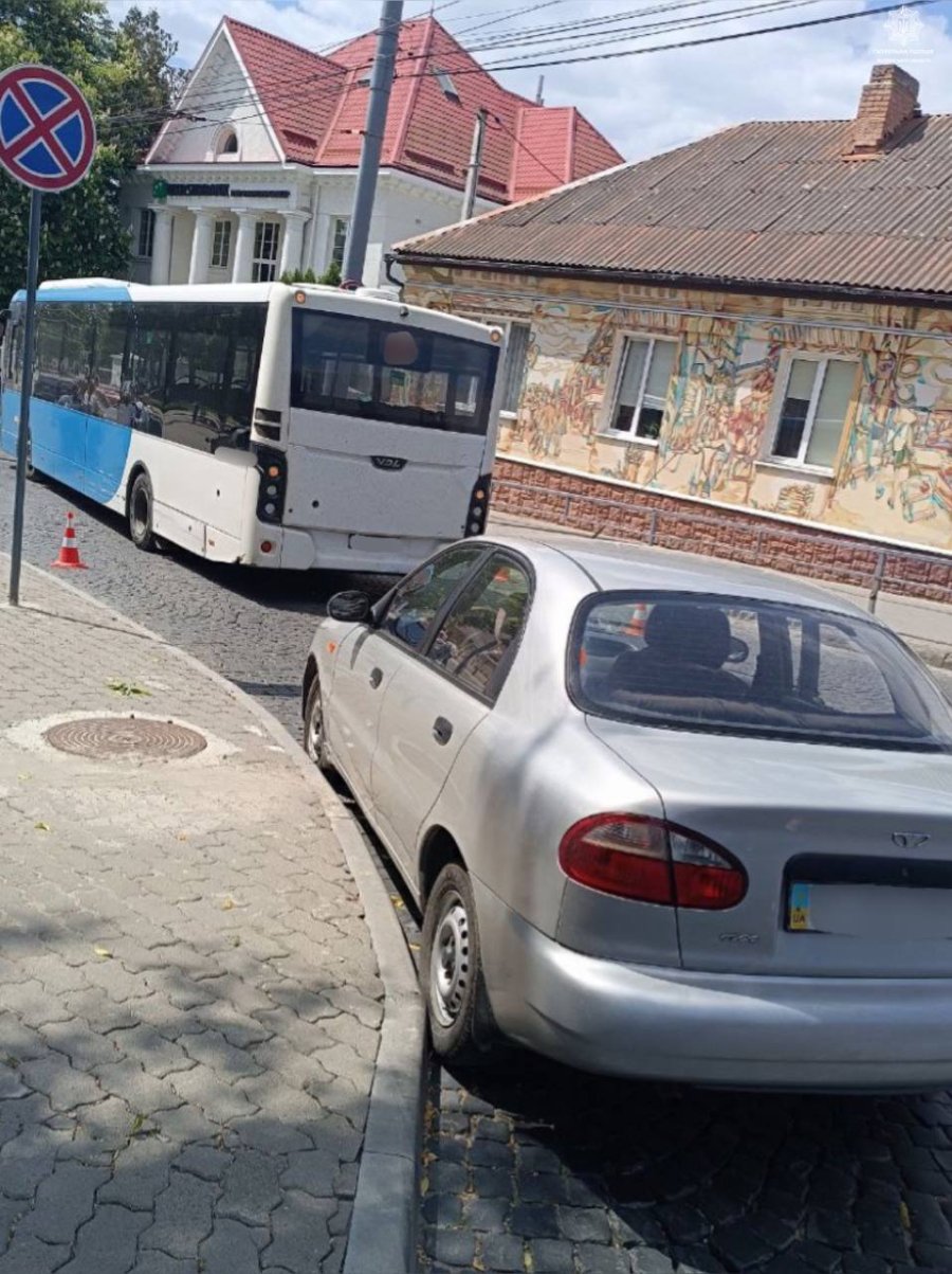 Коли інспектори прибули на місце автопригоди, то з'ясували, що водій легковика марки Daewoo не вибрав безпечного інтервалу та зіткнувся з автобусом марки VDL.