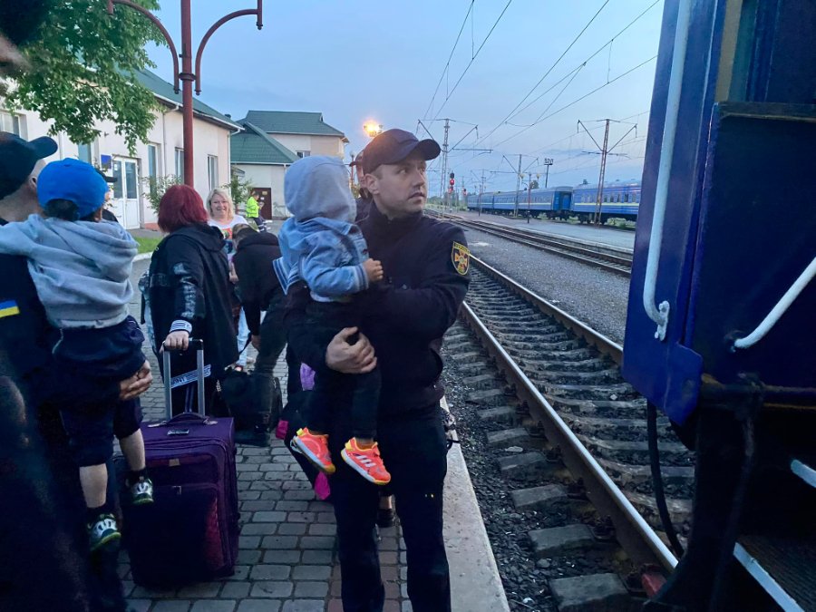 Співробітники ДСНС допомогли дітям і дорослим зійти з потягу, перенести речі до автобуса, надали моральну підтримку тим, хто її потребував.