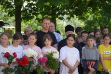 Вшанували пам'ять захисників сьогодні на шкільному подвір'ї у колі їхніх рідних та близьких, а також вчителів та учнів ліцею. Освятив меморіальні дошки отець Іван.