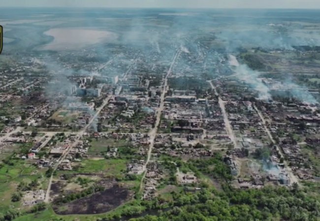 «Ось як зараз виглядає місто Вовчанськ, за яке йдуть важкі бої. Відео зняв дрон 501 батальйону морської піхоти», - йдеться у коментарі до відео.