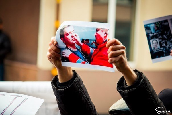 А о 15:00 учасники Євромайдану вийшли до стін обласного управління міліції, де журналісти влаштували пікет, аби підтримати колег, які 1 грудня постраждали від кийків "Беркуту" під час сутичок на вулиці Банковій.