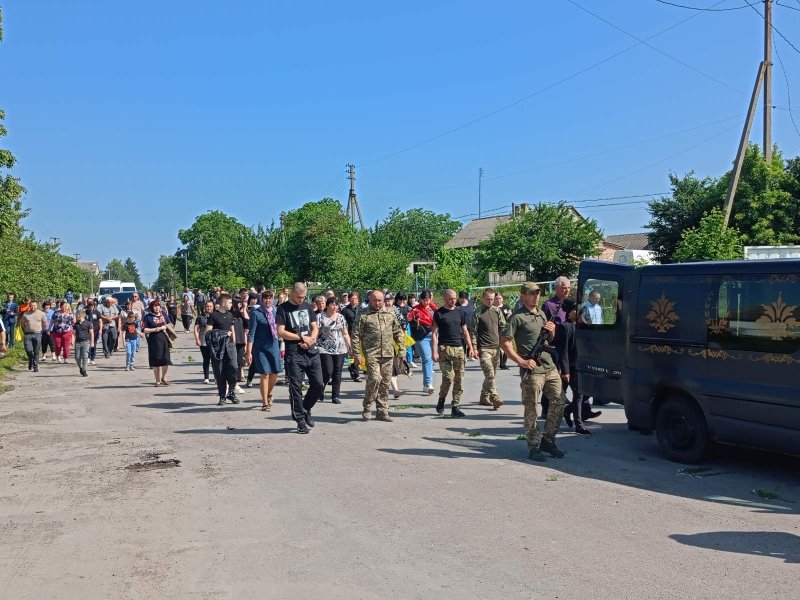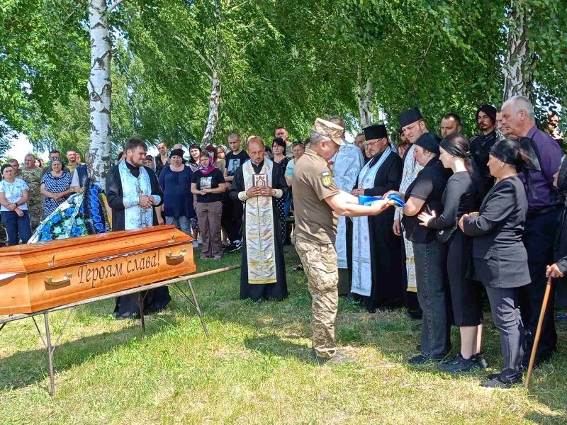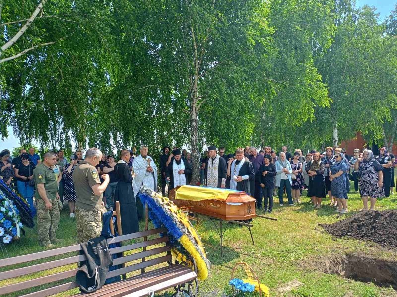У день похорону, 6 червня, мешканці громади, схиливши голови в пошані, зустріли навколішки траурний кортеж із тілом полеглого захисника України. Прощалися з загиблим зі сльозами на очах, скорботою та болем від непоправної втрати рідні, односельчани, жителі навколишніх сіл, друзі, представники влади та військові. Поховали бійця поруч із іншими Героями на кладовищі в селі Угринів.