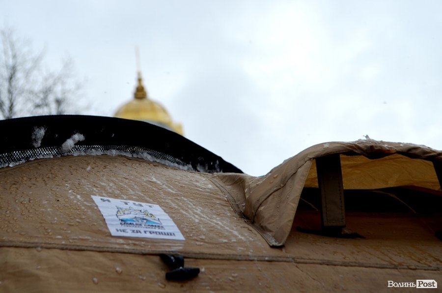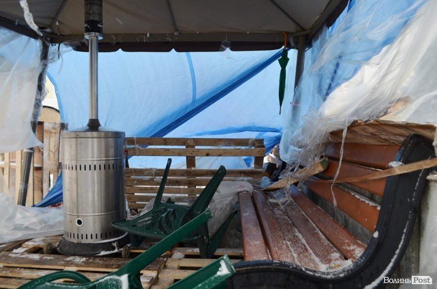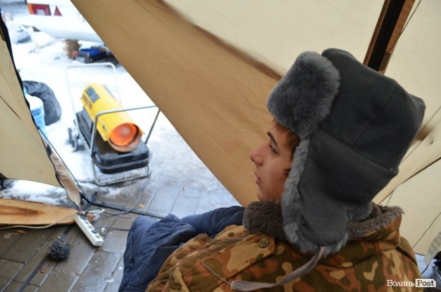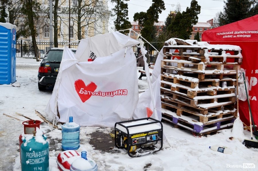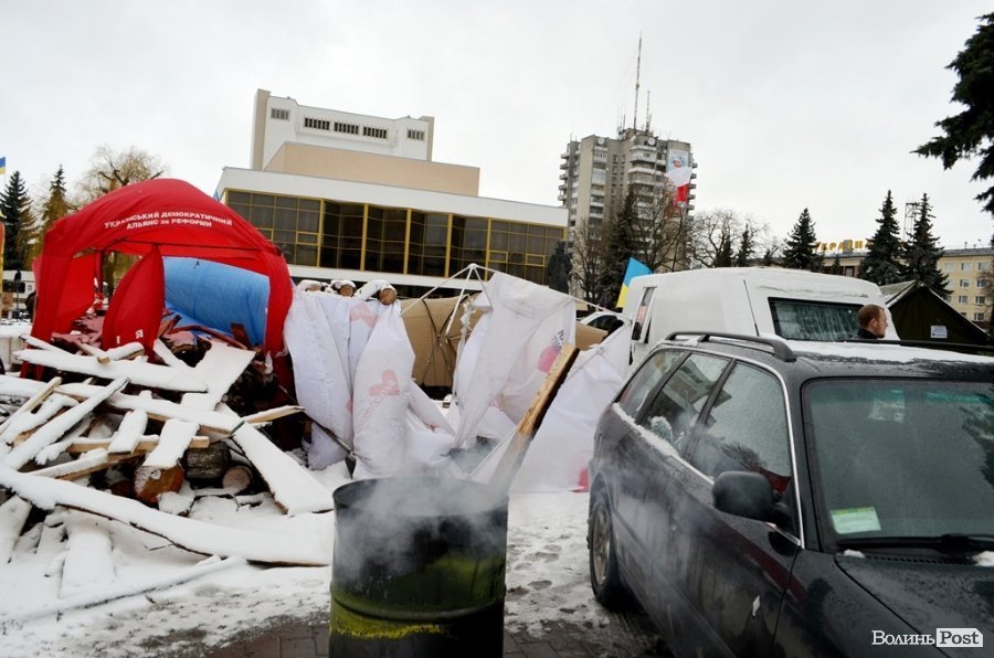 Зима прийшла: луцький Євромайдан мало не знесло вітром. ФОТО