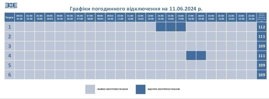 У вівторок, 11 червня, у Волинській області діятимуть графіки погодинного відключення електроенергії (ГПВ).