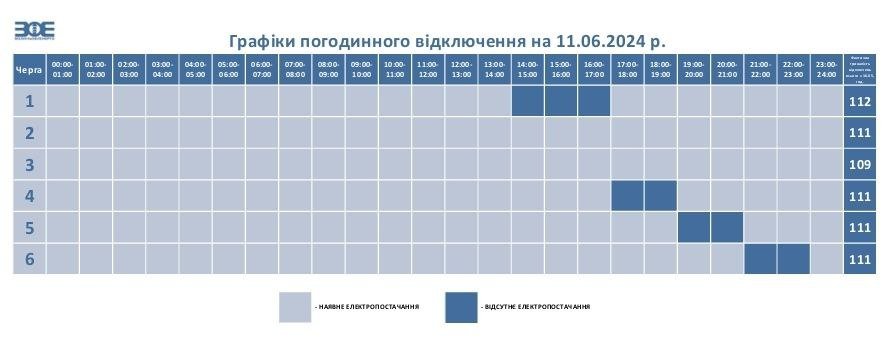 У вівторок, 11 червня, у Волинській області діятимуть графіки погодинного відключення електроенергії (ГПВ) з 14:00 до 23:00, повідомляє в телеграмі Волиньобленерго.