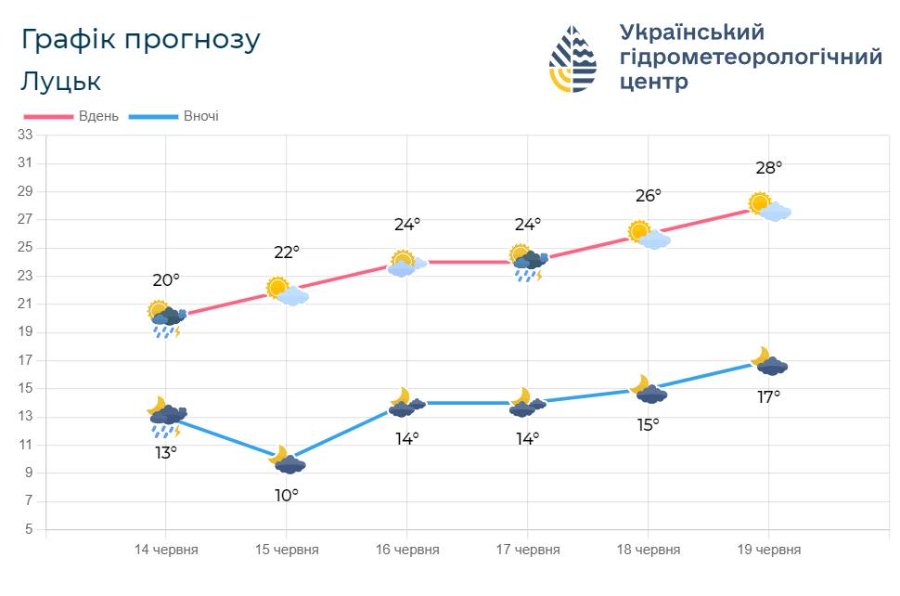 Температура 15-16 червня вночі становитиме 9-14⁰, вдень - 20-25⁰ тепла.