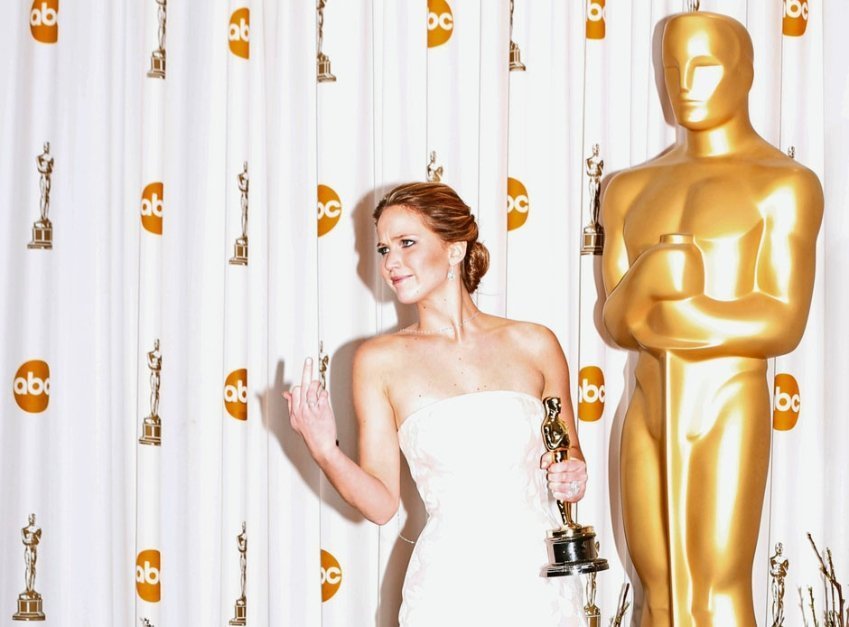 Дженніфер Лоуренс з щойно отриманим Оскаром за кращу жіночу роль у фільмі «Мій хлопець – псих» , 24 лютого 2013 року. MIKE BLAKE, США