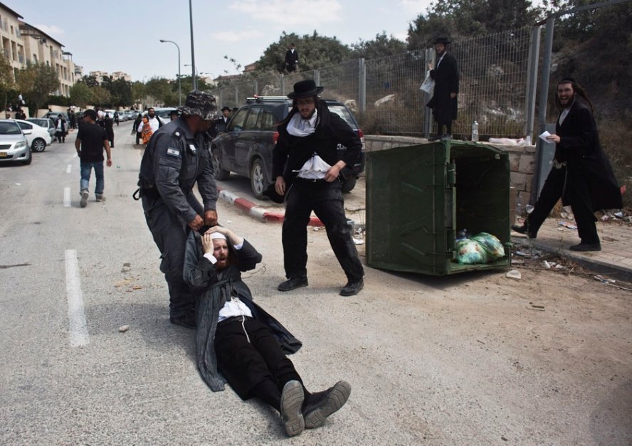 Ізраїльський поліцейський тягне ультра-православного чоловіка під час зіткнень в місті Бейт-Шемеш, неподалік від Єрусалиму, 12 серпня 2013. NIR ELIAS, Ізраїль