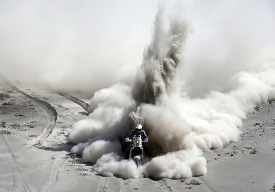 Південноафриканський гонщик Райан Ван Нікерк на мотоциклі KTM під час 5-го етапу ралі Дакар 2013, 9 січня 2013. JACKY NAEGELEN, Чилі