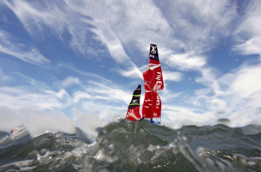 Яхта Team Emirates New Zealand готується до третього запливу на Кубку Луї Віттона в Каліфорнії, 18 серпня 2013. PETER ANDREWS, США