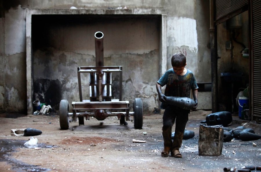 Ісса, 10 років, несе мінометний снаряд на збройовій фабриці Вільної сирійської армії в Алеппо, 7 вересня 2013. HAMID KHATIB, Сирія