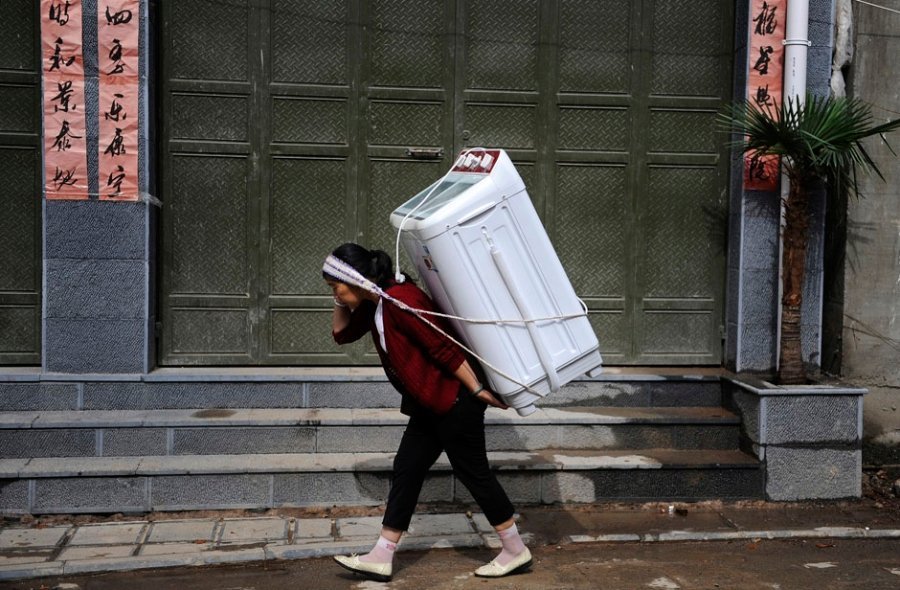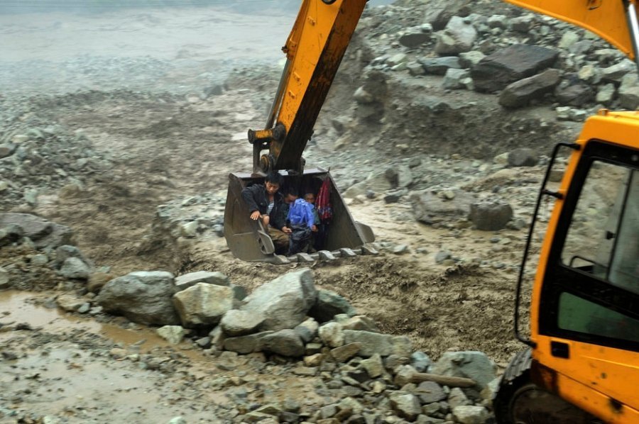 Екскаватор вивозить людей із затопленої під час сильних дощів місцевості у провінції Сичуань, 10 липня 2013. YANG TAO, Китай