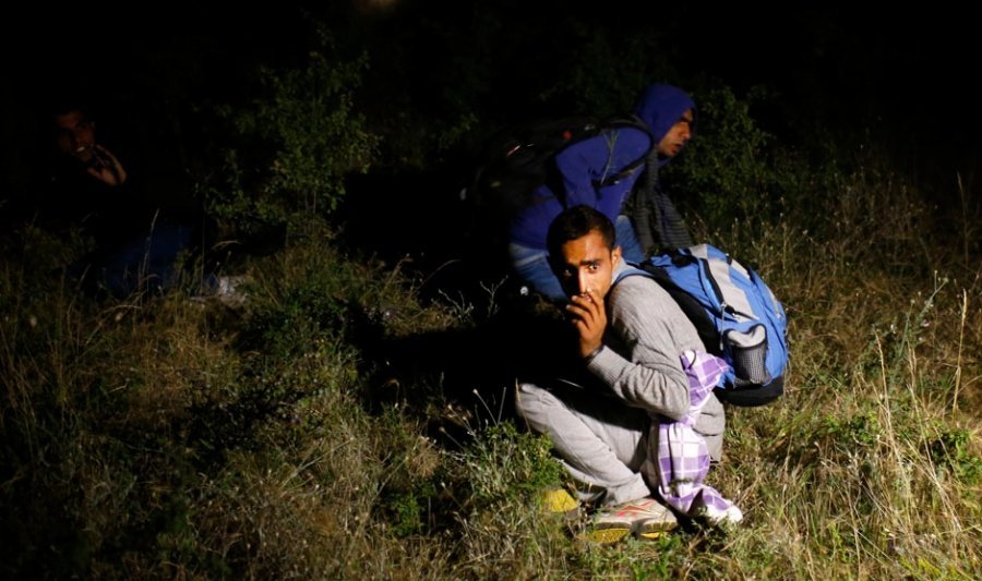 Мігранти, які прибули, за їх словами з Сирії, сидять на землі після затримання сербською поліцією після незаконного переходу кордону з Македонією, 17 липня 2013. MARKO DJURICA, Сербія